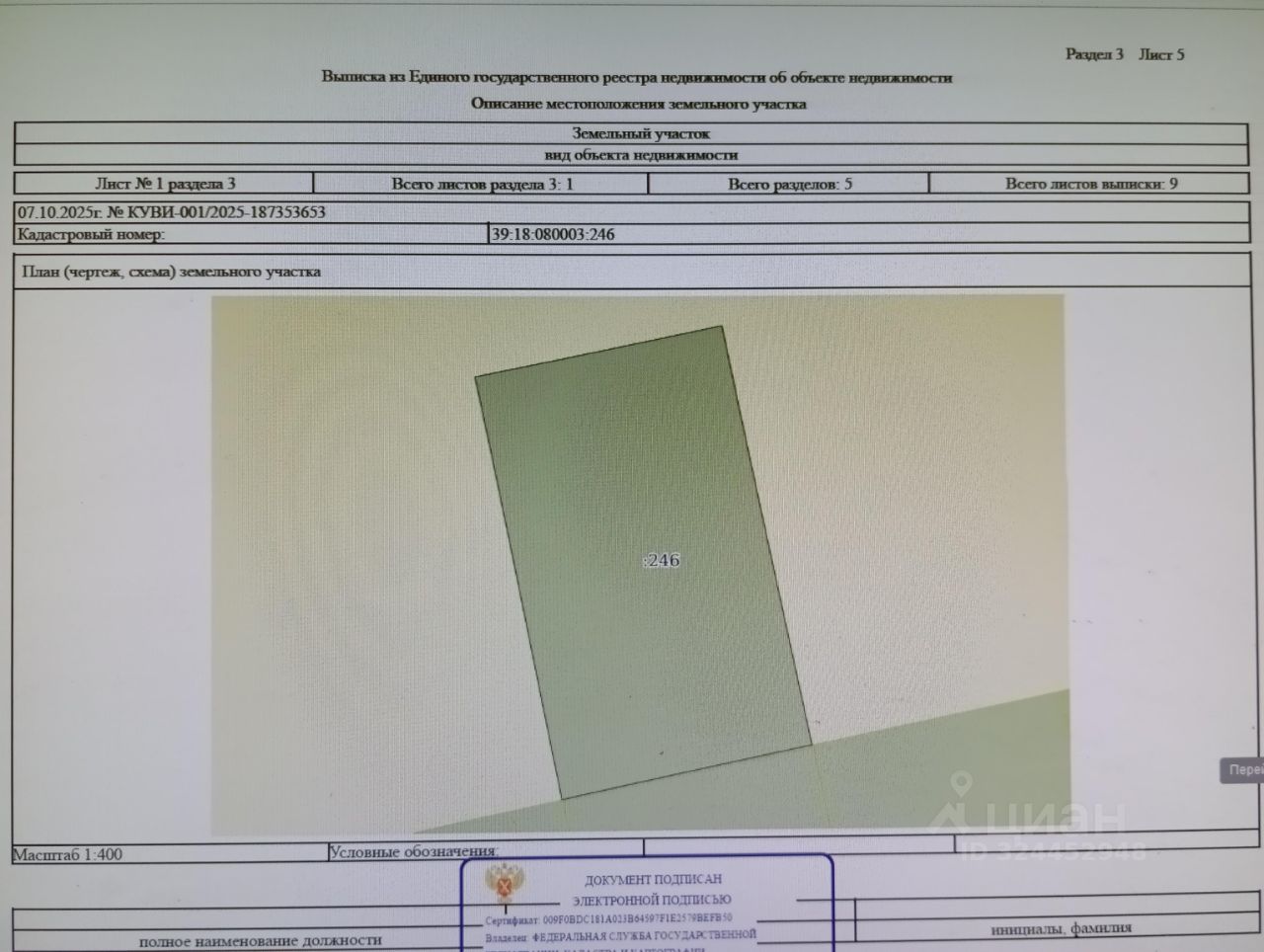 право заключения договора аренды земельного участка с КН 39:18:080003:246