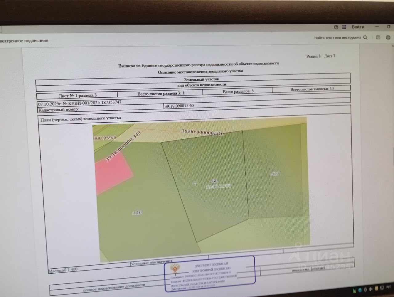 право заключения договора аренды земельного участка с КН 39:18:080003:60