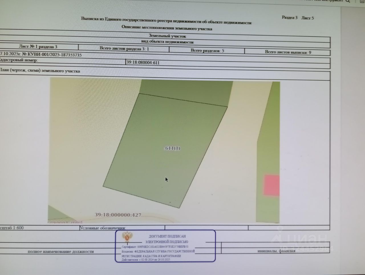 право заключения договора аренды земельного участка с КН 39:18:080004:611