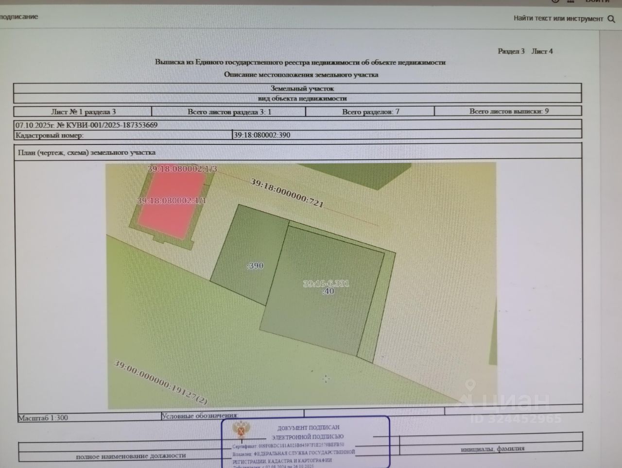право заключения договора аренды земельного участка с КН 39:18:080002:390