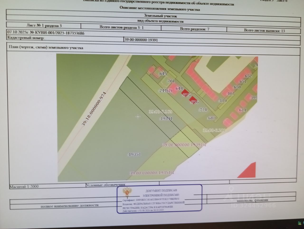 право заключения договора аренды земельного участка с КН 39:00:000000:19391