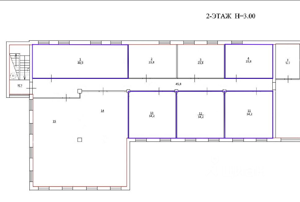 - кабинеты 11, 12, 13 - по 34 м2 (по 2 окна в каждом).