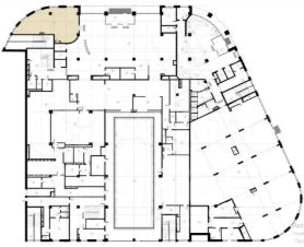 Помещение имеет прямое сообщение с центральным лобби и дизайнерской зоной Музей тенниса, что гарантирует постоянный поток посетителей из числа гостей гостиницы, спортсменов, резидентов офисов и деловых гостей.