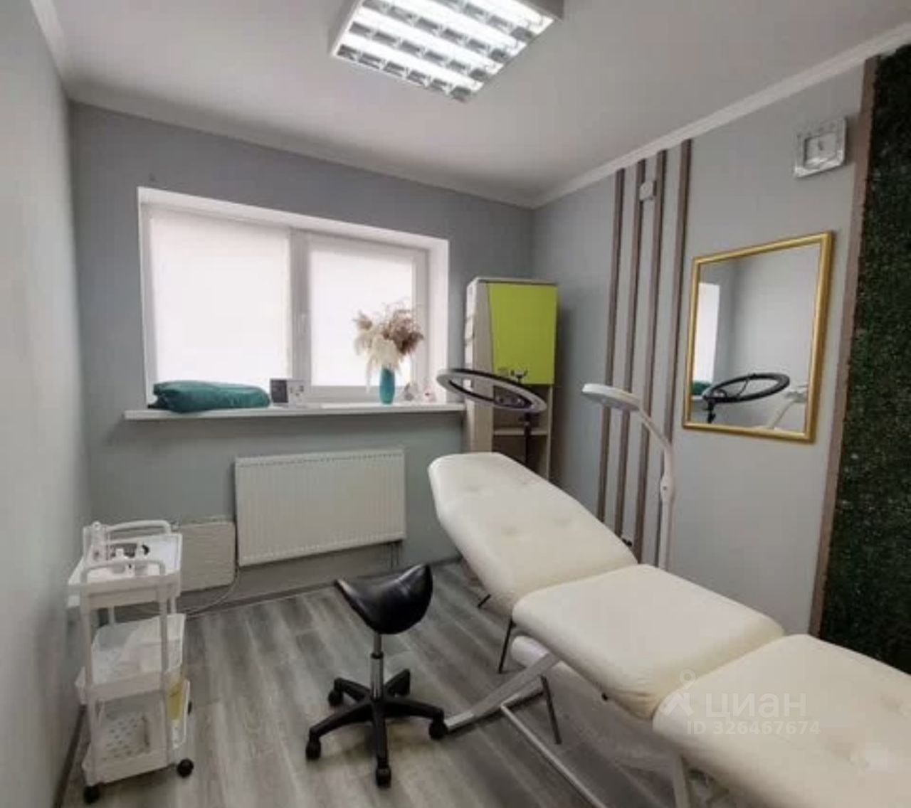 Кабинет 15 метров, раковина, окно, полностью оборудованное место. Кабинет находится в цокольном помещении фитнес центра. В кабинете работает косметолог, рядом работает мастер маникюра и подолог.