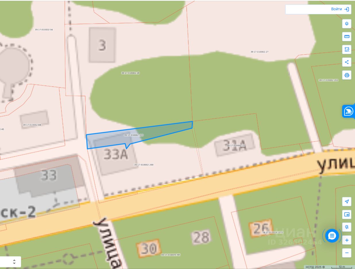 Земельный участок с кадастровым номером 39:17:010002:433, общей площадью 321 кв.м. Расположен по адресу: Калининградская область, Светлогорский р-н., г. Светлогорск. Форма собственности: муниципальная (сведения о регистрации права собственности: 39:17:010002:433-39/021/2025-1 от 27.03.2025). Категория земель: земли населённых пунктов. Разрешённое использование земельного участка: стоянка транспортных средств. Земельный участок расположен в зоне размещения объектов делового, общественного и коммерческого назначения (О-1). Кадастровая стоимость земельного участка 284 030 (двести восемьдесят четыре тысячи тридцать) рублей 43 копейки.