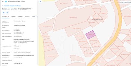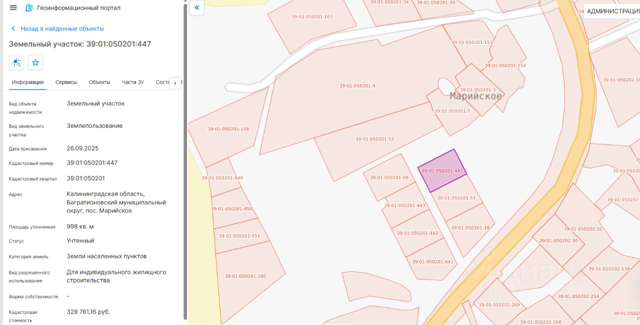 Земельный участок с кадастровым номером 3901:050201:447, расположенный по адресу: Калининградская область, Багратионовский район, пос. Марийское