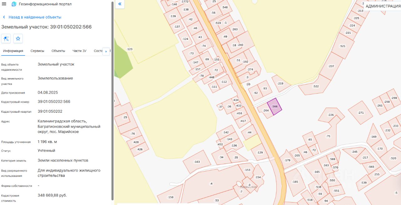 Земельный участок с кадастровым номером 39:01:050202:566, расположенный по адресу: Калининградская область, Багратионовский муниципальный округ, пос. Марийское