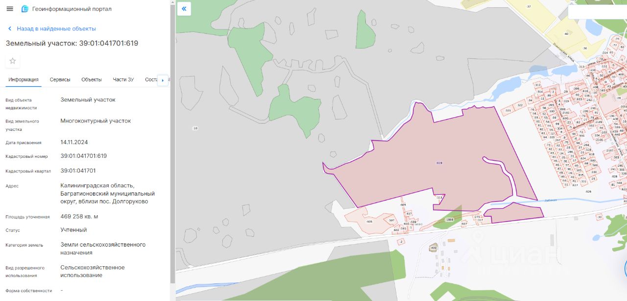 Земельный участок с кадастровым номером 39:01:041701:619, расположенный по адресу: Калининградская область, Багратионовский район, вблизи п. Долгоруково