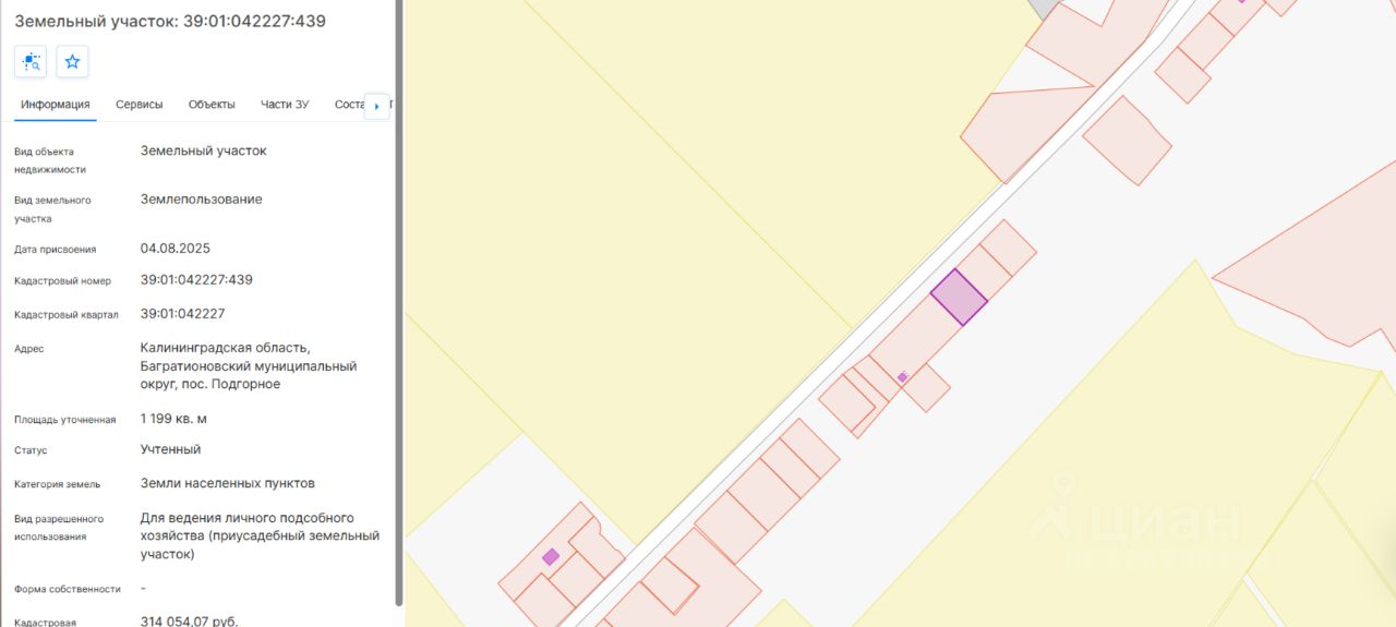 Земельный участок с кадастровым номером 39:01:042227:439, расположенный по адресу: Калининградская область, Багратионовский муниципальный округ, пос. Подгорное