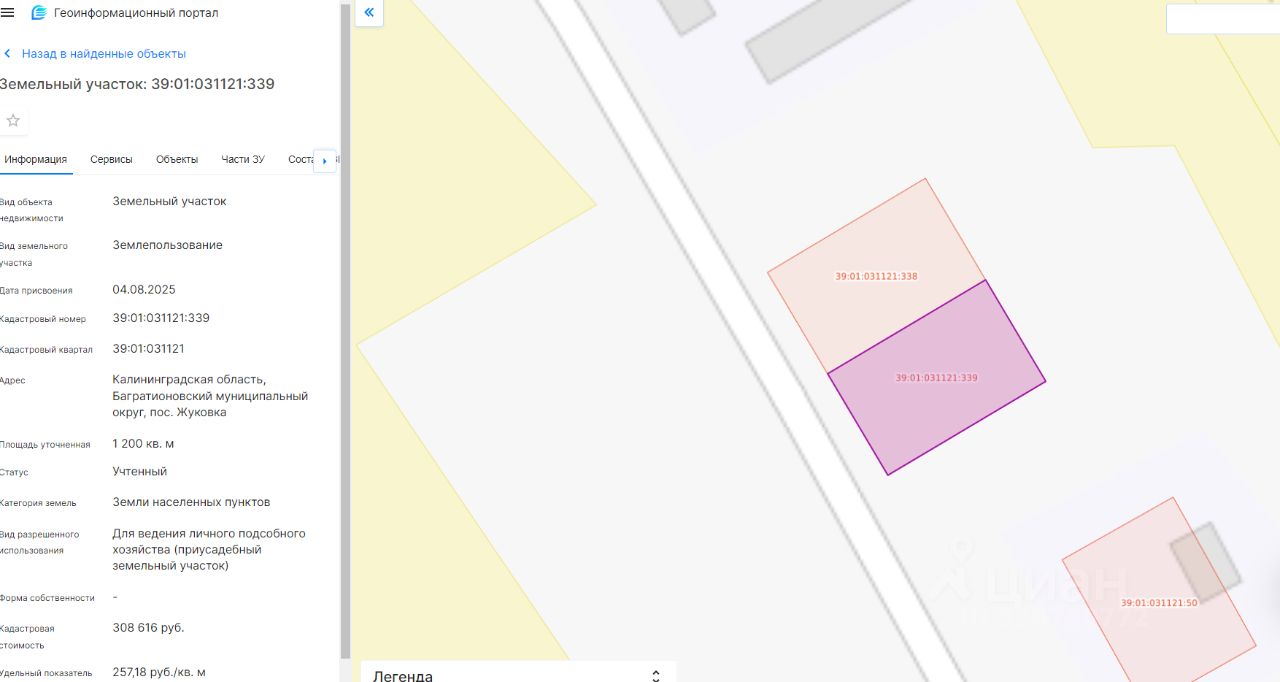 Земельный участок с кадастровым номером 39:01:031121:339, расположенный по адресу: Калининградская область, Багратионовский район, п. Жуковка