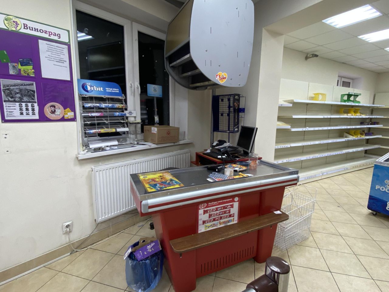 Оборудование на фотографиях, а именно : пристенный холодильник охлаждающий, стеллажи, холодильник-короб, при кассовая зона, принадлежит собственнику, при необходимости может остаться, если вам будет необходимо для вашего бизнеса.