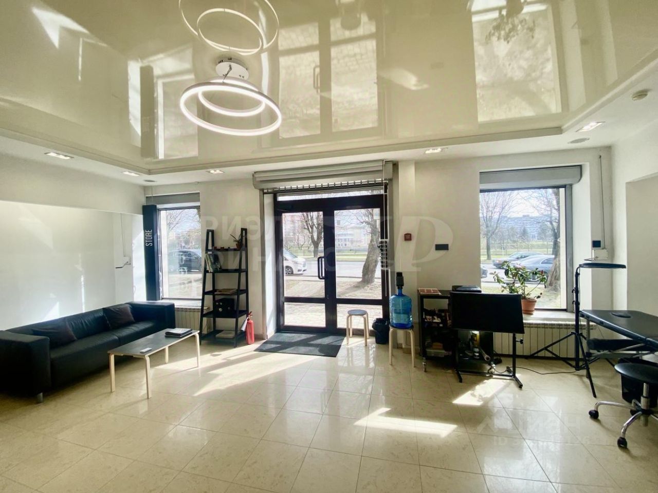 На проезжую часть выходят большие витринные окна, установлены рольставни. Все коммуникации подключены, стоят приборы учета, отопление центральное.
