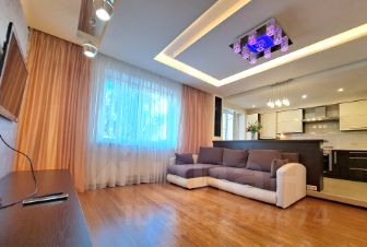 Ваших вещей, оборудованное рабочее место для тех, кто работает с документами. Несколько разных вариантов подсветки, два спальных места: раскладной диван и двуспальная кровать для тех, кто кому могут приехать гости. Застекленная лоджия, два телевизора (в зале и в спальне).