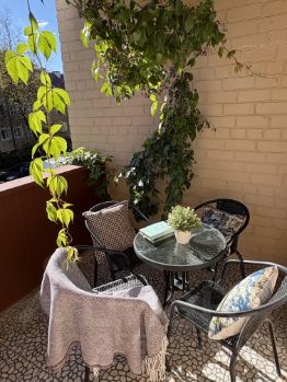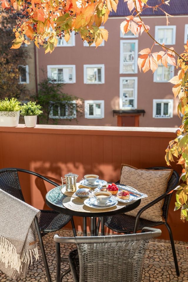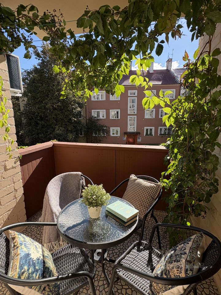 Большой открытый БАЛКОН-ТЕРРАСА с уличной мебелью, с видом на немецкие домики и брусчатую мостовую для атмосферных завтраков и уютных вечеров.