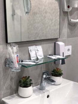 В комплексе есть СПА, тренажёрный зал, ресторан, Spar. Апартаменты с большой террасной, оснащены всем необходимым для комфортного отдыха: двуспальная кровать, диван (раскладывается), полностью укомплектованная кухня, электрическая плита, холодильник, чайник, посуда для приготовления, микроволновая печь. Стиральная машина, полотенца, халаты, одноразовые гигиенические принадлежности входят в стоимость проживания, фен, утюг.