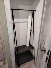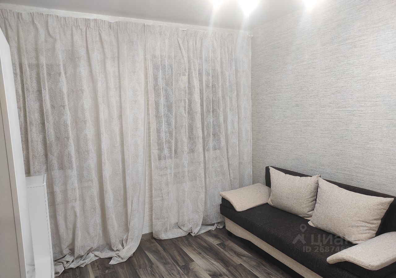 В квартире есть необходимая бытовая техника: холодильник, микроволновка и стиральная машина. В комнате установлены телевизор, шкаф и диван-еврокнижка. Также имеется выделенная гардеробная и балкон с панорамным остеклением.