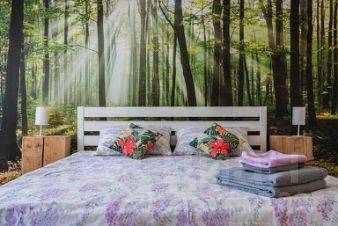 Интерьер выдержан в современном стиле с преобладанием светлой цветовой гаммы, а кованые элементы и элементы состаренного дерева напомнят, что вы остановились в немецком доме городка Сrаnz бывшей Восточной Пруссии.