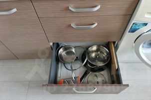 5) Кухонные принадлежности: микроволновая печь, холодильник, чайник, стиральная машина и все необходимые посуды (порошок, кастрюли, турка, сковорода) - все в достатке!