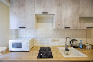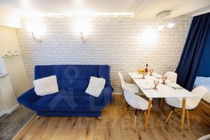 В студии сделан новый дизайнерский ремонт, есть телевизор, микроволновка, фен, утюг, удобный большой ортопедический диван и кровать (160/200), современная кухня со всем необходимым, санузел с полотенцами и средствами гигиены, чистое постельное, стиральная машина. Много разного света. Есть дополнительная удобная раскладушка. Гардеробная. В студии сделана шумоизоляция! можем организовать трансфер. Цена зависит от количества дней.