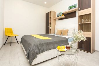 После прогулок по городу до апартаментов лёгко дойти пешком и расслабиться на удобном диване. И выспаться на уютной кровати.