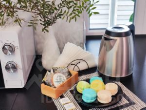 Гостям бесплатно предоставляется постельное белье белое страйп-сатин класса LUХ, полотенца, чай, кофе, необходимые продукты (сахар, соль, растительное масло, кофе), зубная щетка, бритва, вся необходимая косметика (гель для душа, шампунь, кондиционер для волос, лосьон для тела, косметический набор), халаты, тапки.