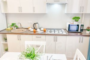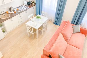 Мы рады предложить Вам новые просторные двухуровневые апартаменты в центре города Пионерский, всего в 150 метрах от моря. Апартаменты находятся в апарт-отеле на центральной улице Комсомольской, в здании МФЦ, где расположены кафе, рестораны, магазины и мини-рынок. Всего 3 минуты ходьбы и Вы возле спуска к морю, 500 метров пешим шагом до междугороднего железнодорожного вокзала.