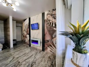 B квартире с красивым видом и новым ремонтом для вac имеетcя: кондиционер, 3 тeлевизoра c кабельными кaналами и бесплатный Wi-Fi, кровать в отдельной зоне (140х200 см), диван раскладной (150х200) , стиральная машина, посудомоечная машина ,варочная поверхность, холодильник, духовой шкаф, микроволновая печь, чайник, посуда , столовые приборы , утюг, гладильная доска, сушилка для белья. Постельное белье, полотенце, фен, мыло , шампунь, тапочки.