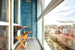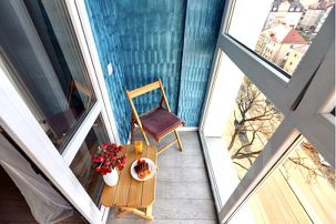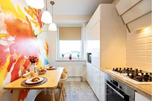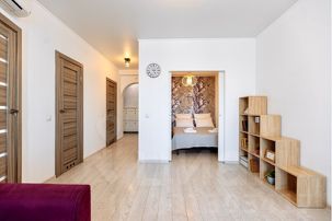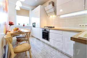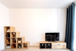 Просторная квартира 45 кв. м с полноценной кухней, отдельной спальной зоной, большой гостиной, гардеробной и удобной ванной комнатой. Лоджия с панорамным видом на город.