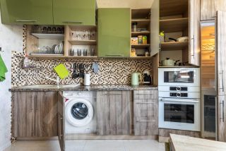Кофемашиной, Холодильником, Плитой, Микроволновой печью, Электрическим чайником, Духовкой.