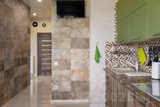 Застекленная лоджия, Кухня, Гостиная зона, Стиральная машина, Фен, Телевизор с плоским экраном и кабельными каналами.