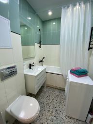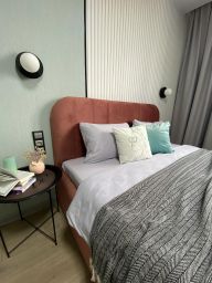 Квартира оборудована всем для комфортного проживания, обустроена в светлых тонах. В квартире - спальня с просторной кроватью и ортопедическим матрасом, раскладной диван-кровать, большой телевизор со СМАРТ-ТВ, уютная кухня с холодильником, посудомоечной машиной, стиральной машиной, плитой, духовым шкафом, микроволновой печью, чайником, кухонными принадлежностями!