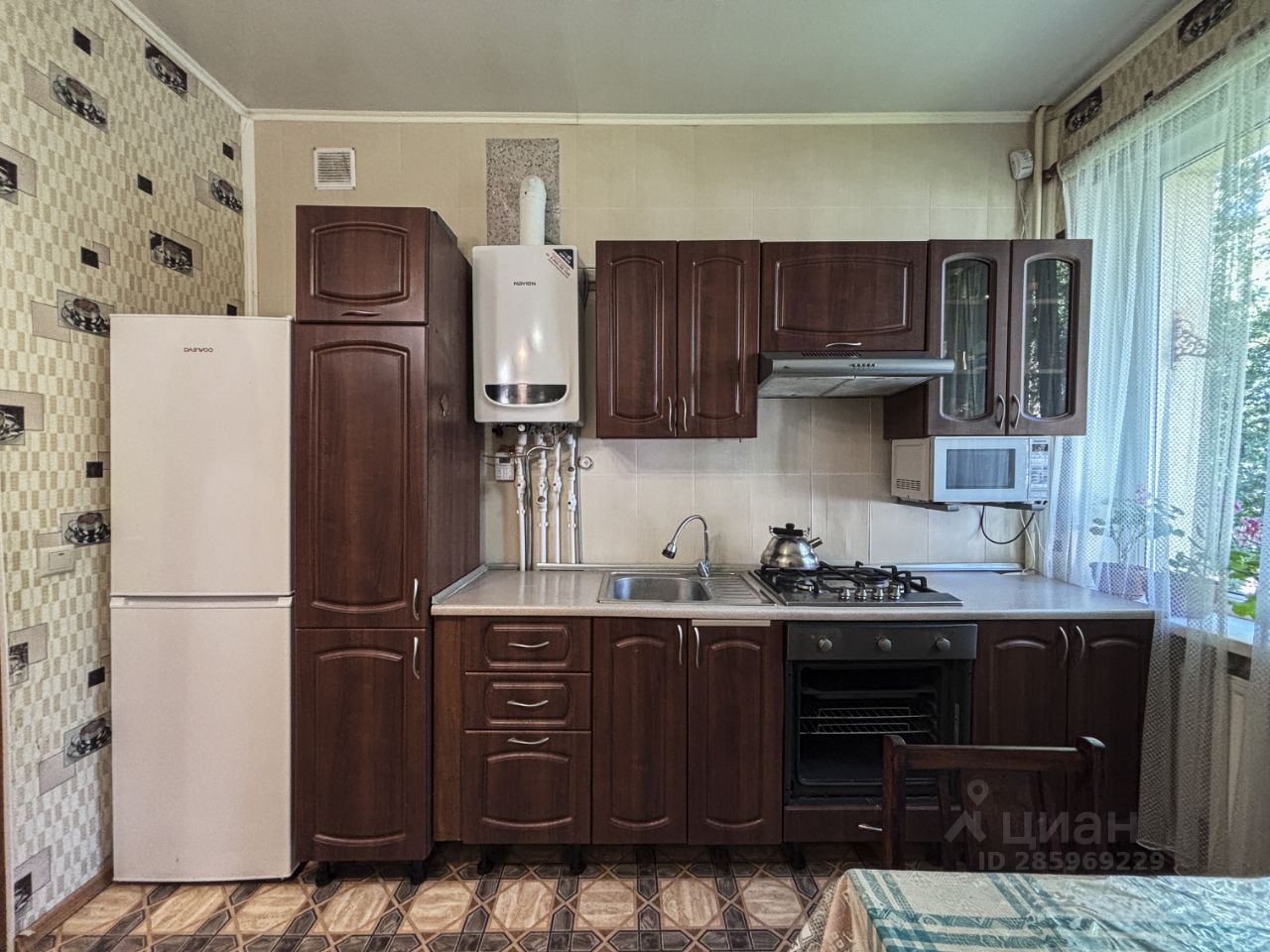 Комнаты смежные. Просторная гостиная и уютная спальня обставлены необходимой мебелью. Квартира оборудована всей необходимой техникой: холодильник, телевизор, стиральная машина, микроволновая печь. Санузел раздельный. Окна выходят на улицу.