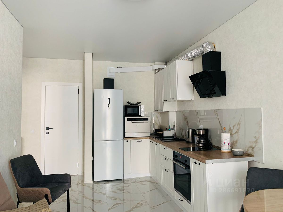 Просторная кухня-гостиная с мягким диваном, раскладным столом, удобными креслами, быстрым Wi-Fi, современным телевизором и эргономичной кухней, которая оборудована всем необходимым для приготовления пищи (варочная панель, духовой шкаф, микроволновка, чайник, кофеварка, посудомоечная машина, кухонная утварь) - идеальное место для спокойного отдыха с любимым человеком, семьей или друзьями.