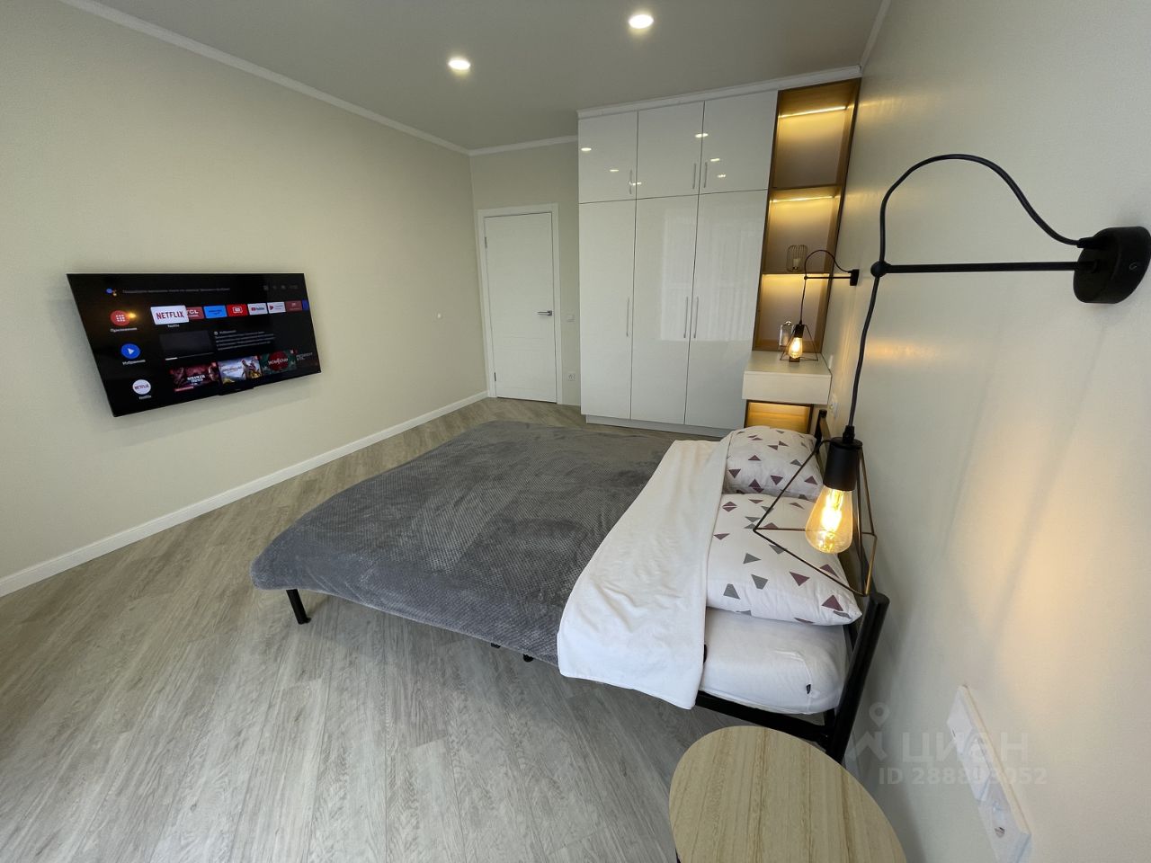 Спальня - удобная двуспальная кровать, большой ЖК телевизор, вместительный дизайнерский