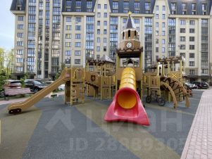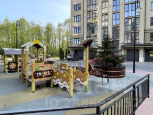 Современная детская игровая площадка в огороженном дворе
