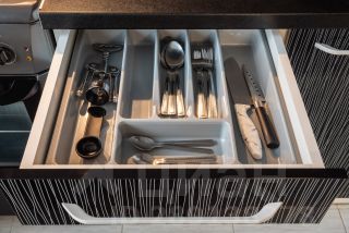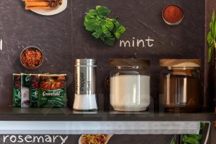 Холодильником, Плитой, Электрическим чайником, Микроволновой печью, Кофемашиной.