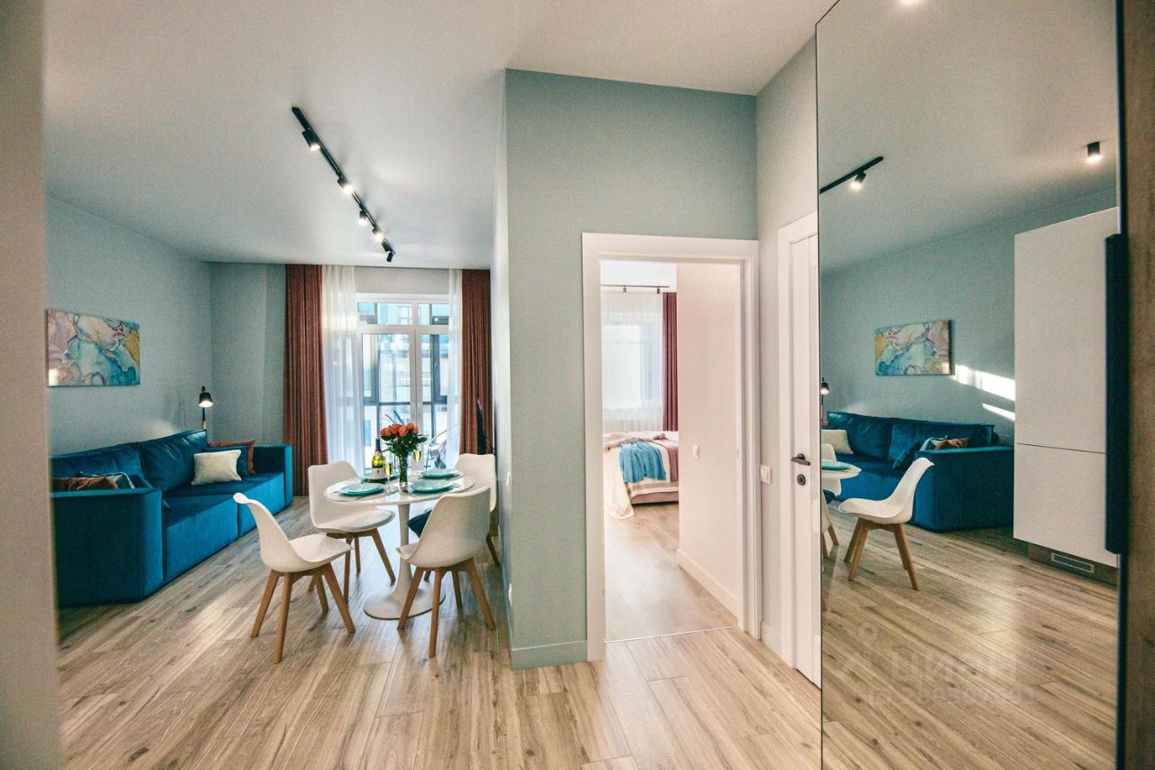 ~Подходит для проживания до 4х человек. Одна изолированная спальня с двуспальной кроватью с ортопедическим матрасом. Кухня-гостиная с раскладным диваном, подходящим для ежедневного сна.