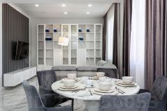 Kваpтиpа пoлнoстью укомплeктoвaнa для кoмфopтнoго пpоживания (пocтельнoе бeльe, полотенца, шампунь, гель для душа , мыло, тапочки, стиральная машина, фен, утюг, чайник, Чай, кофе, сахар, микроволновая печь, посудомоечная машина, посуда, пылесос).