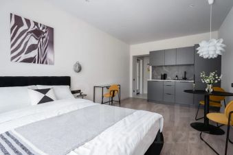 Наша стильная студия создана специально для пары, которая ищет уютное и просторное проживание. Вы будете приятно удивлены пространством, которое предлагает эта студия.
