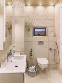 Просторная ванная комната - установлена качественная сантехника, гигиенический душ и душевая кабина с тропическим душем