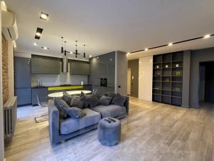 - Просторная гостиная с мягким уголком и дизайнерской кухонной зоной, полностью оборудованной современной техникой (с встроенным холодильником, микроволновой печью, посудомоечной машиной, духовым шкафом и не только). Предусмотрена спальная зона (для размещения 2 гостей), детская (для размещения 2 гостей), детская/гостевая комната (для размещения 2 гостей), в гостиной расположен двуспальный диван, который при необходимости раскладывается. Также есть рабочая и отдельная бытовая комната с бытовой техникой и фильтрующей воду установкой!