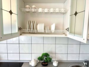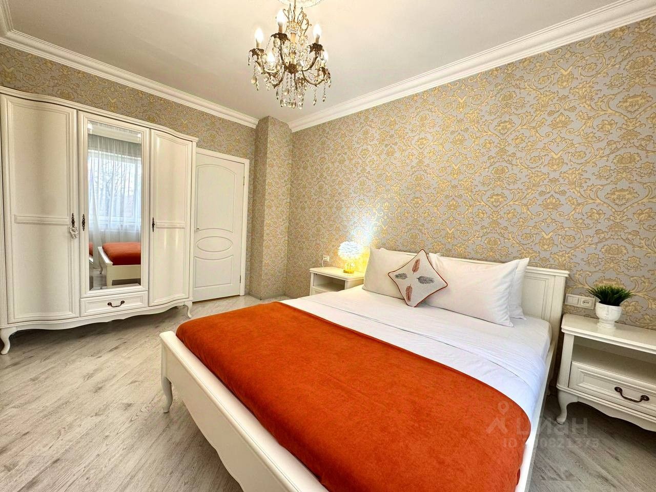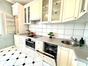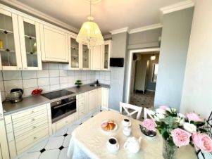 Квартира состоит из двух изолированных комнат. В спальне двуспальная кровать 160х200, а гостиная оснащена двуспальным раскладным диваном 160х200. Размещение возможно до 4-х человек. Имеется крытая лоджия, на которой организована рабочая зона с письменным столом. Санузел совмещен, включает в себя ванну. Отдельная кухня имеет всю необходимую посуду и приборы для готовки. Есть микроволновая печь, холодильник, электрический чайник.