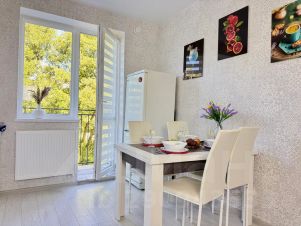 Сдаётся абсолютно новая красивая квартира в спокойном тихом районе, вся техника и автономное отопление в наличии, парковка во дворе, прекрасная детская площадка, территория огорожена, свой дикий пляж в 5 минутах ходьбы, до центрального песчаного пляжа пионерского 20 минут пешком, на маршрутке 5 минут, до центра светлогорска 25 минут пешком. Рядом магазин, остановка, велодорожка по всему побережью.