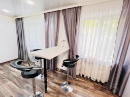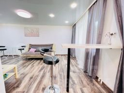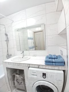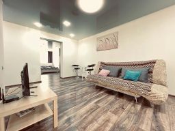 Вас ждет однокомнатная квартира с двухспальной кроватью и раскладным диваном в большой гостиной , а также всем необходимым для комфортного проживания.