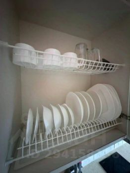 Кухня оборудована техникой и посудой для приготовления пищи: электрическая плита, микроволновая печь, холодильник, посуда для приготовления пищи, столовые приборы, столовая посуда.