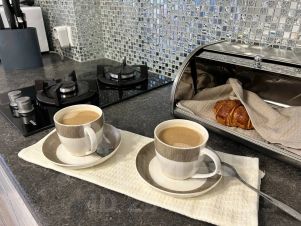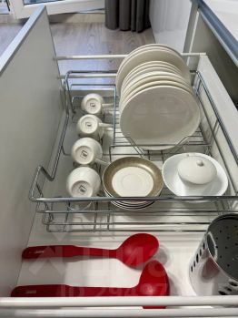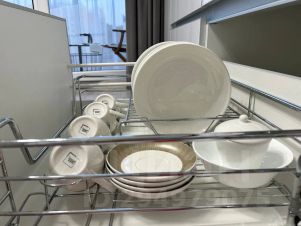 В квартире: 1 телевизор, высокоскоростной бесплатный Wi-Fi, чайник, микроволновая печь, кофемашина, посуда; кровать (180/200), диван (раскладной), постельное белье, полотенца. В том числе фен, утюг, гладильная доска, гели д/душа, шампуни, т/б, стиральный порошок, тапочки, зонты. Всегда есть чай, кофе, сахар, соль, масло растительное.