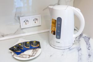 Уютный, дизайнерский интерьер, в котором все продумано до мелочей, выполнен в спокойных тонах с использованием высококачественных материалов. Комфортные спальные матрасы, плотные шторы, автономное отопление, подогреваемые полы. В квартире есть удобная рабочая зона и высокоскоростной интернет wi-fi. Для наших гостей мы подготовили новые комплекты постельного белья отличного качества, комплект полотенец на каждого гостя, индивидуальные средства гигиены. Кухня полностью укомплектована необходимой посудой и техникой. Для вашего удобства на кухне встроена посудомоечная машина, а утро порадует вас свежесваренным кофе из кофемашины. Сверкающая от чистоты ванная комната порадует гостей своей эргономичностью. В наших апартаментах можно расслабится после экскурсии или провести романтический вечер