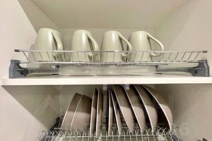 На кухне Вы найдете все необходимое для приготовления еды: посуда, столовые приборы, кастрюли и сковородки, микроволновка, холодильник, чайник, духовка и газовая плита.