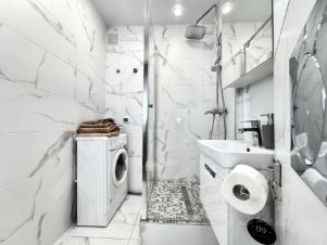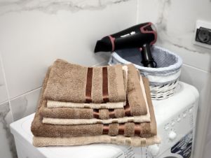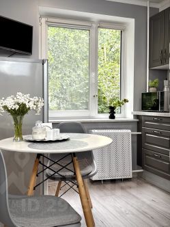 Кухня оснащена газовой панелью ,духовым шкафом ,стиральной машиной, посудомойкой,микроволновой печью и чайником ,тостером ,холодильником .В квартире имеется фен ,утюг ,гладильные принадлежности ,телевизор .