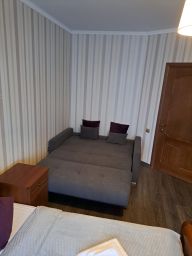 Спальня - большая двуспальная кровать с белоснежным постельным бельем, телевизор с плоским экраном, шкаф, раскладной диван на два места (160 x 195) и кондиционер!